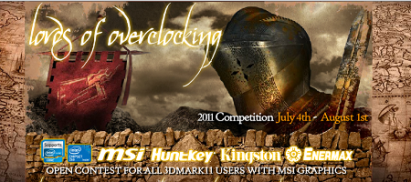 Até 1 de Agosto todos os aventureiros do Overclocking poderão mostrar as suas técnicas no concurso “Lords of Overclocking”. O Concurso está aberto a todos os utilizadores de 3D Mark11 e Placas Gráficas MSI. Os vencedores do concurso terão oportunidade de competir no MSI Master Overclocking Arena (MOA) 2011 em Taipei. Os vencedores das várias fases do concurso têm direito a prémios entre os quais se incluem as mais recentes placas de vídeo, motherboards, coolers e fontes de alimentação fornecidas pelos patrocinadores. Que provavelmente servem para substituir as que foram danificadas com as experiências… Poderá encontrar todas as informações acerca do Concurso Aqui: