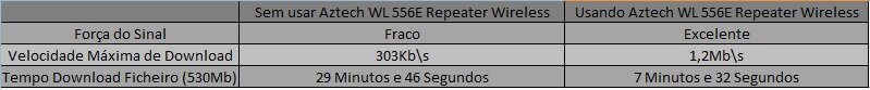 Os resultados dos testes poderão ser avaliados pela seguinte tabela: