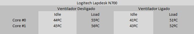Para verificar a eficiência do Lapdesk N700 como plataforma de refrigeração efectuei alguns testes de modo a comprovar as diferenças quando a usar ou não o ventilador ligado.