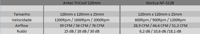 Devemos no entanto salientar que o Noctua NF-S12B é um ventilador desenhado para ser utilizado na admissão e / ou extracção de ar de uma caixa e não tanto orientado para o uso sobre um dissipador.