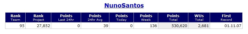 Nunca estive nos lugares da frente a nível de produção, mas sempre me orgulhei participar e contribuir para este nobre projecto, e não penso em parar tão cedo, pois atingi recentemente a marca dos 530 000 pontos.